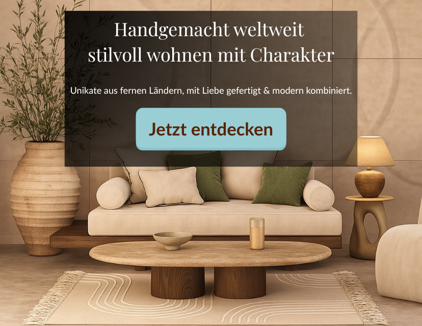 Découvrez des meubles faits main, des accessoires de décoration conçus avec soin et des idées d’aménagement uniques venues du monde entier. Dans notre boutique en ligne, plus de 2 000 articles soigneusement sélectionnés vous attendent – disponibles immédiatement en stock et prêts à donner du caractère à votre intérieur.